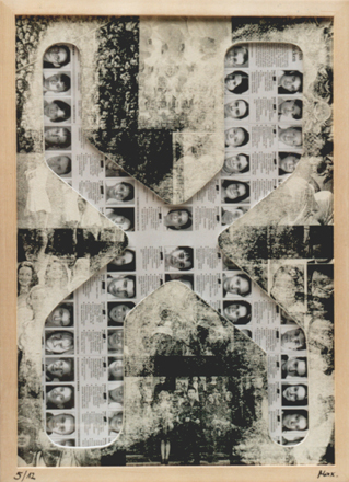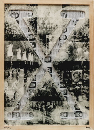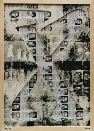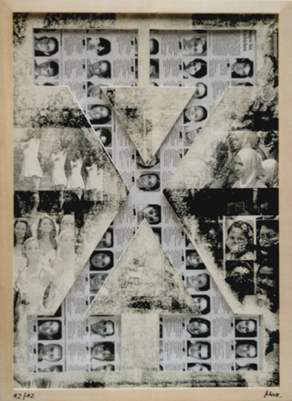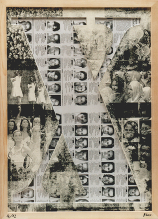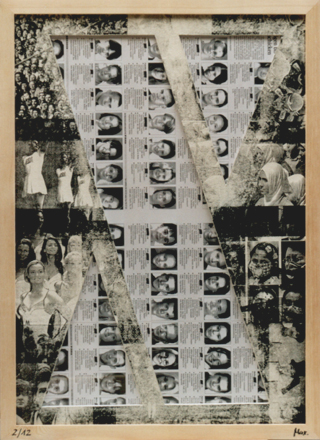 EbenBilderEbenenEine Collage aus Zeitungsfotos, die alle Personengruppen darstellen, in denen das Individuum mehr oder weniger untergeht (z.B. Fußballfans im Stadion, Radsportler, Schönheitsköniginnen usw), also Dokumente gesellschaftlichen Lebens aus unterschiedlichen Zeiten überdecken Jugendliche, die mithilfe der sächsischen Lokalzeitung nach einem Wunsch-Ausbildungsplatz suchen. Das herausgeschnittene X, das für eine Variable stehen kann, als Platzhalter fungiert, für das "Unbekannte", zeigt nur einen Teil der Suchenden, die unterschiedliche X-Form auf den einzelnen Bildern lässt zumindest den Ausschnitt variieren.jeweils 70 x 50 cm ![]() ![]() | ![]() ![]() Maximilian Gehring - Ebenbilderebenen Siebdruck auf Karton, Kopien, Ikea-Rahmen - 2003 ![]() ![]() ![]() ![]() ![]() ![]() ![]() ![]() ![]() ![]() ![]() ![]() Auf die kleinen Bilder klicken! | ||